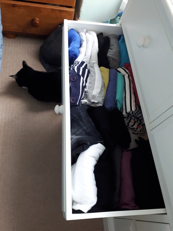 I came to Hull to help D with her wardrobe. Having downsized a couple years ago, she hadn’t gone through her clothes and found the idea understandably overwhelming. There were three full clothes rails, (lots of hangers held several pieces each) and we organised accessories, so we needed three full sessions to clear the clutter.
