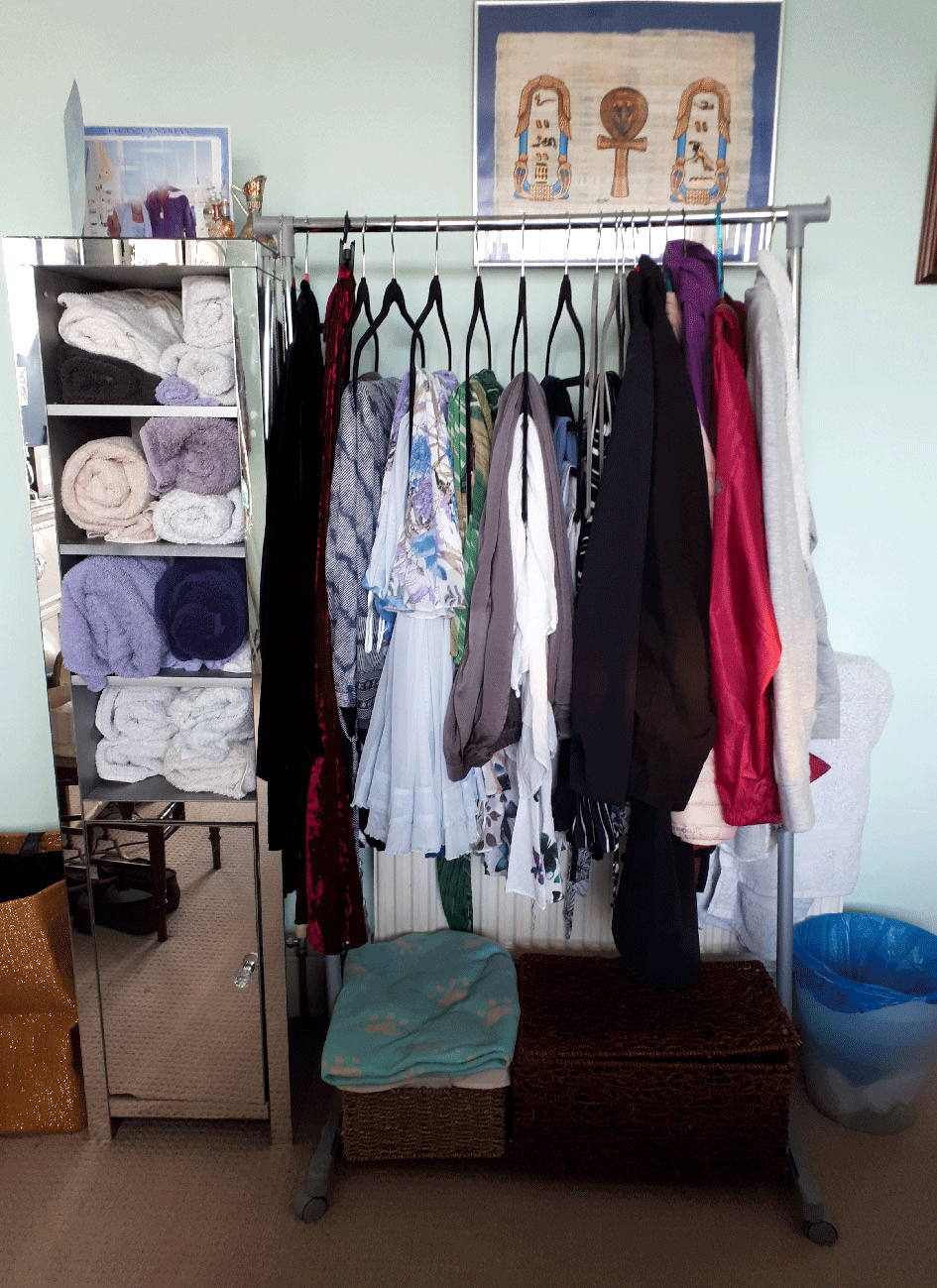 D stores formal clothes apart from daily wear, which is a great idea. However due to lack of space there were dresses hanging in the open (including this beautiful beaded one). If left out, they risk staining, general wear and tear and dust, so we had to make room inside to protect the delicate fabrics.