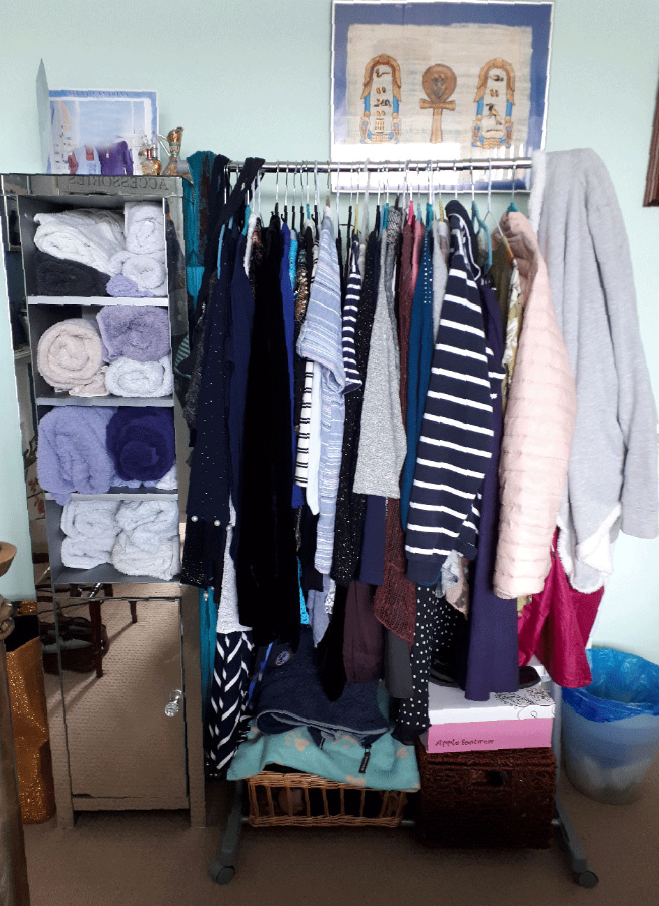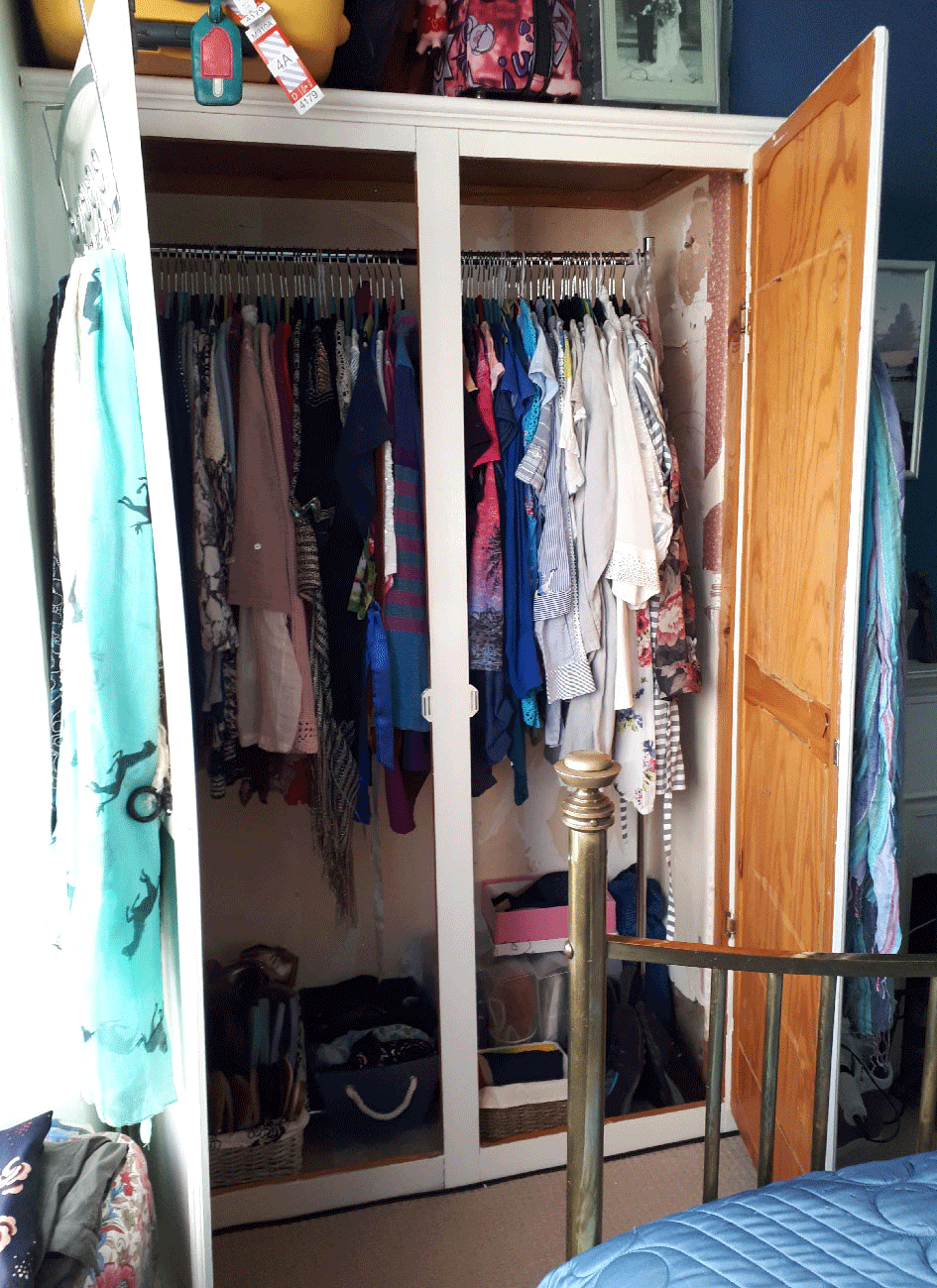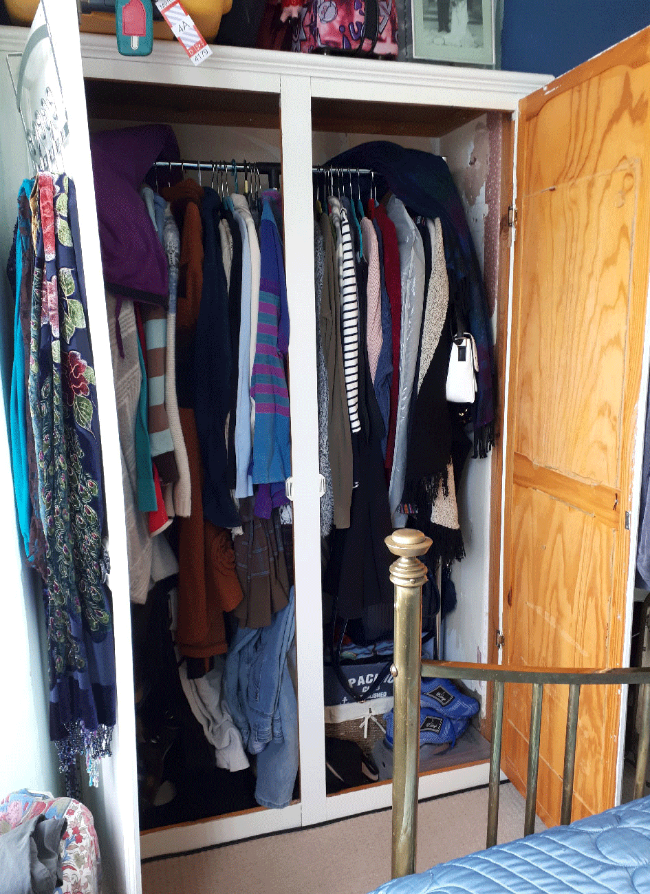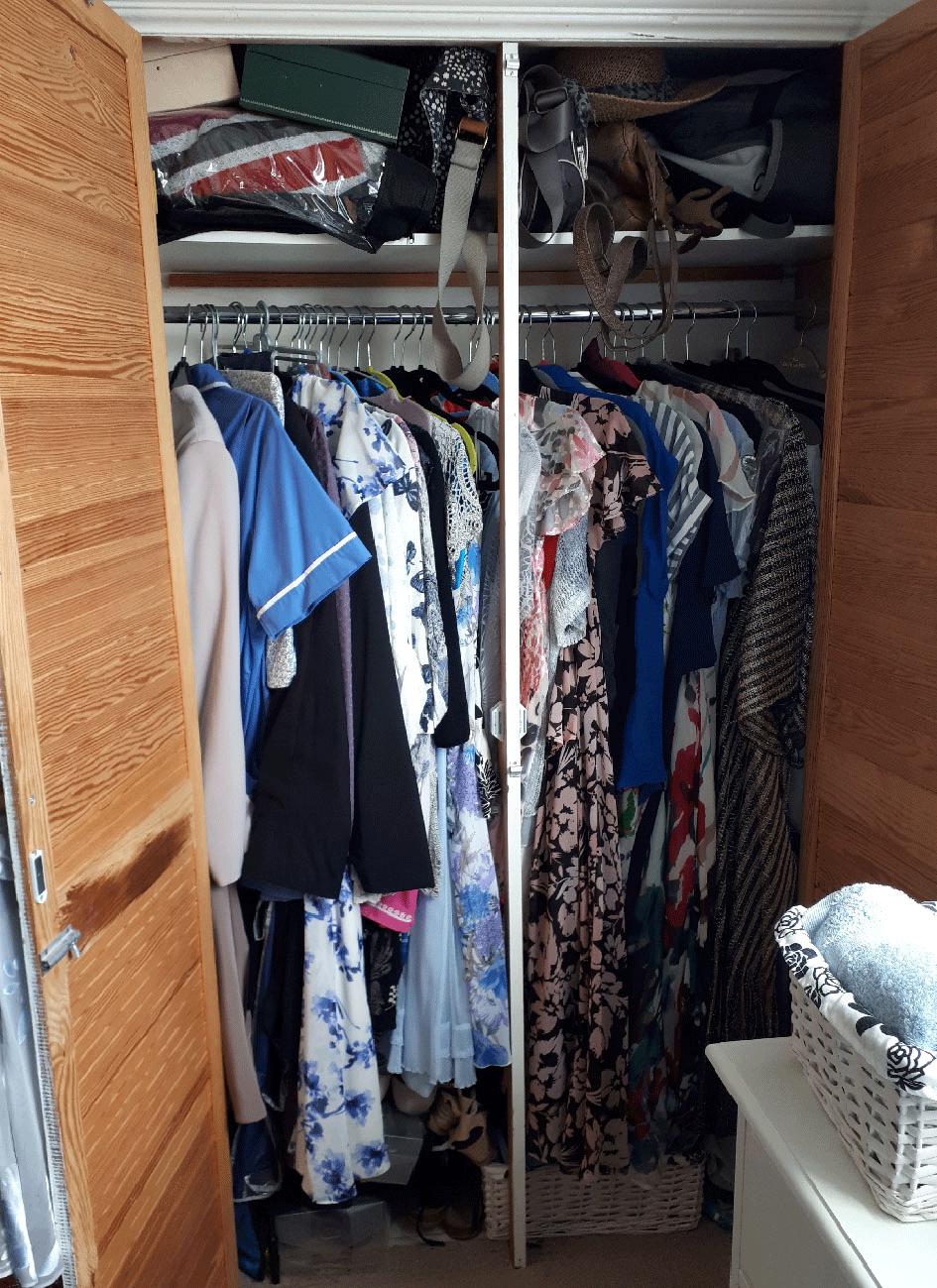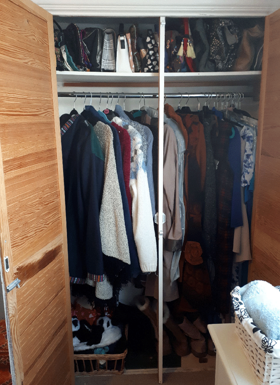 D: “I liked the way she organised the clothes into seasons and purpose and colour. Knowing I wanted to cut down the volume, we decided which pieces I really liked, and which didn’t do much for me … I learnt how to organise clothing better. It’s lovely to open wardrobe doors and see neat colour coordinated rows of clothing, and drawers with neatly folded fleeces etc.”