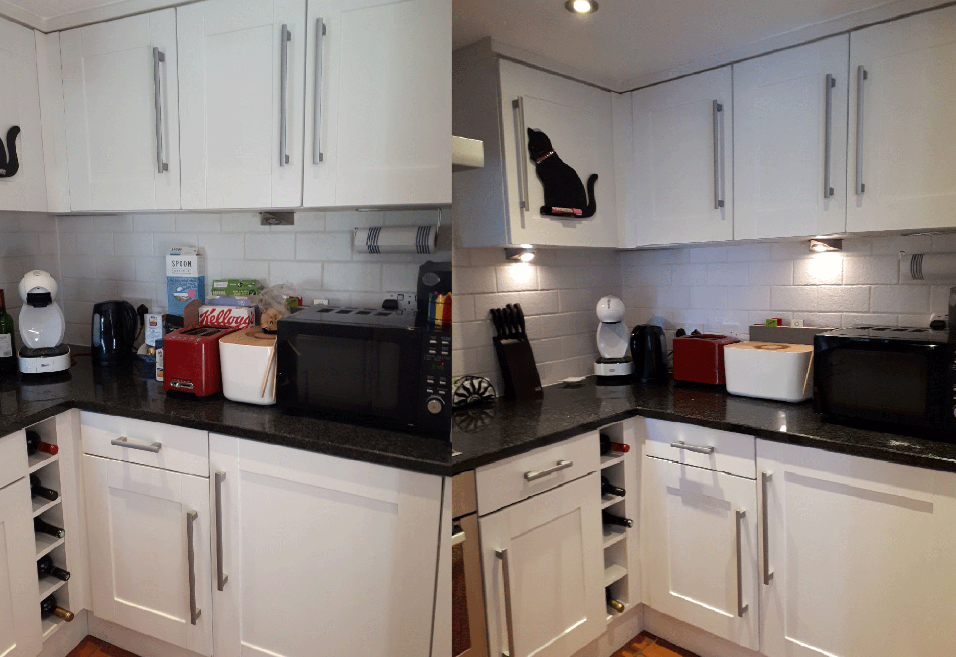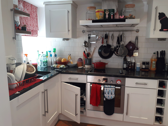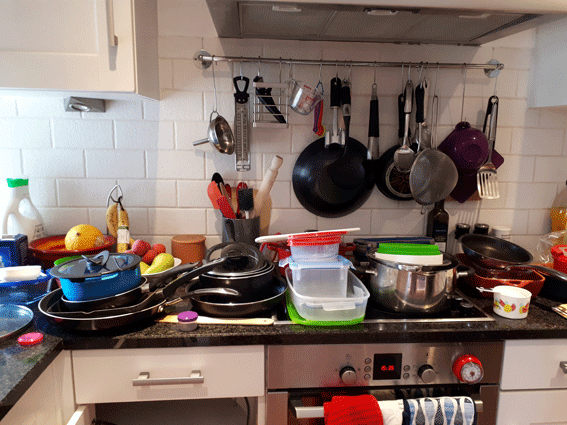 During the process things can get really messy! We took out all the pots and pans to work out what R actually uses and where things should be stored.