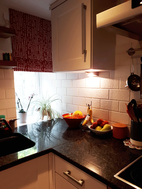 First we moved some vases from the windowsill to form a display in the hall, and cleaning supplies were given a place in a cupboard. This made room for the plants from the folding table and freed up counter space.